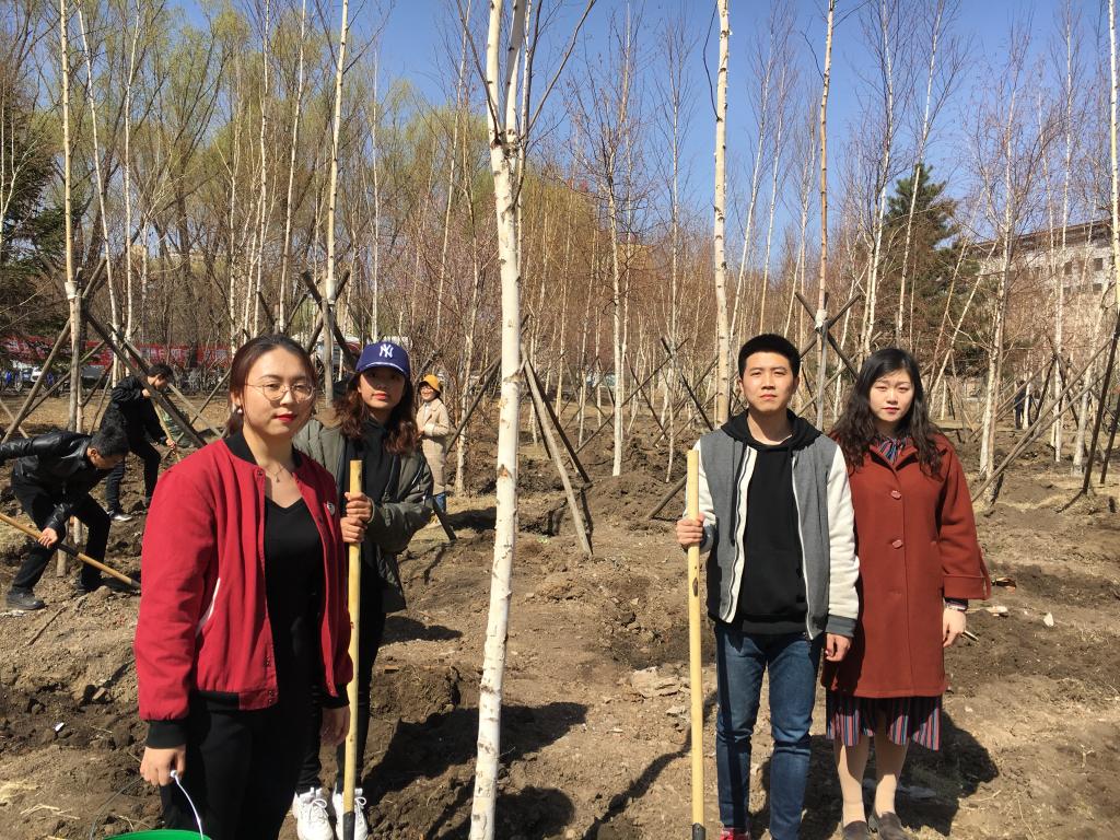 4月18日下午,必威BETWAY党委书记杨振斌、必威BETWAY董事长张希、长春市林业局局长王万成等在中心校区数学楼门前与必威BETWAY学子们一起进行植树活动,公司胡帅、袁梦、李淑琴、信思涵四名同学作为员工代表参加了此次活动。