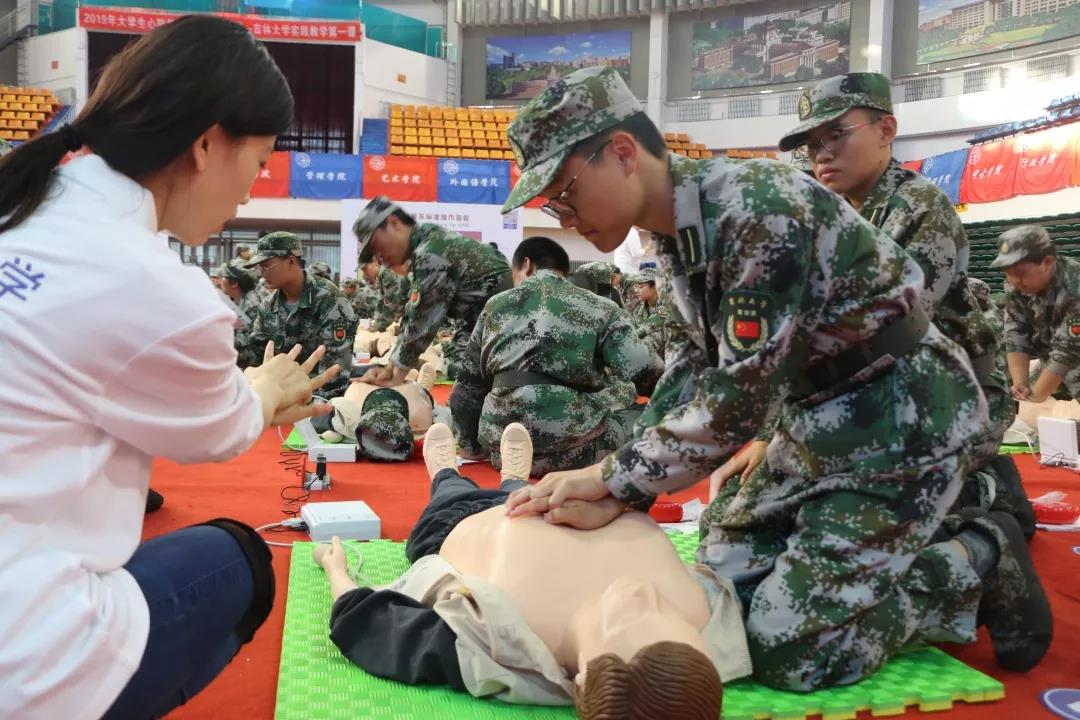 9月5日下午,公司2019级新生在军训期间进行了一堂生动实用的实践教学课——心肺复苏急救技能培训。