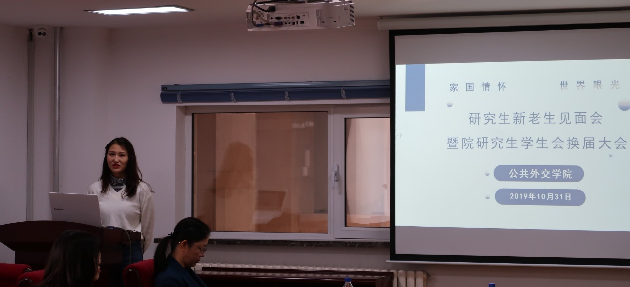 紧接着,第一届研究生会主席刘丹丹从研究生会举办的各大活动、经典专著的推荐、微信公众号的运营、日常宿舍管理等多方面对一年来的工作做了全面细致的总结。随后,研究生会的员工干部换届选举拉开了帷幕。各位候选人进行了选举演讲,他们从自我介绍到依据个人优势并结合所报岗位畅谈未来的工作规划和设想等多个方面进行了答辩,与会研究生根据候选人的竞选演讲进行了无记名投票,根据投票结果产生了新一届研究生会干部成员:孔祥琦当选研究生会主席、刘冠霖当选主席秘书、高桂芳当选学术部部长、王慧智当选文体部部长。新一批团结、拼搏、踏实的研会干部团队与现任研会干部团队进行了工作交接。