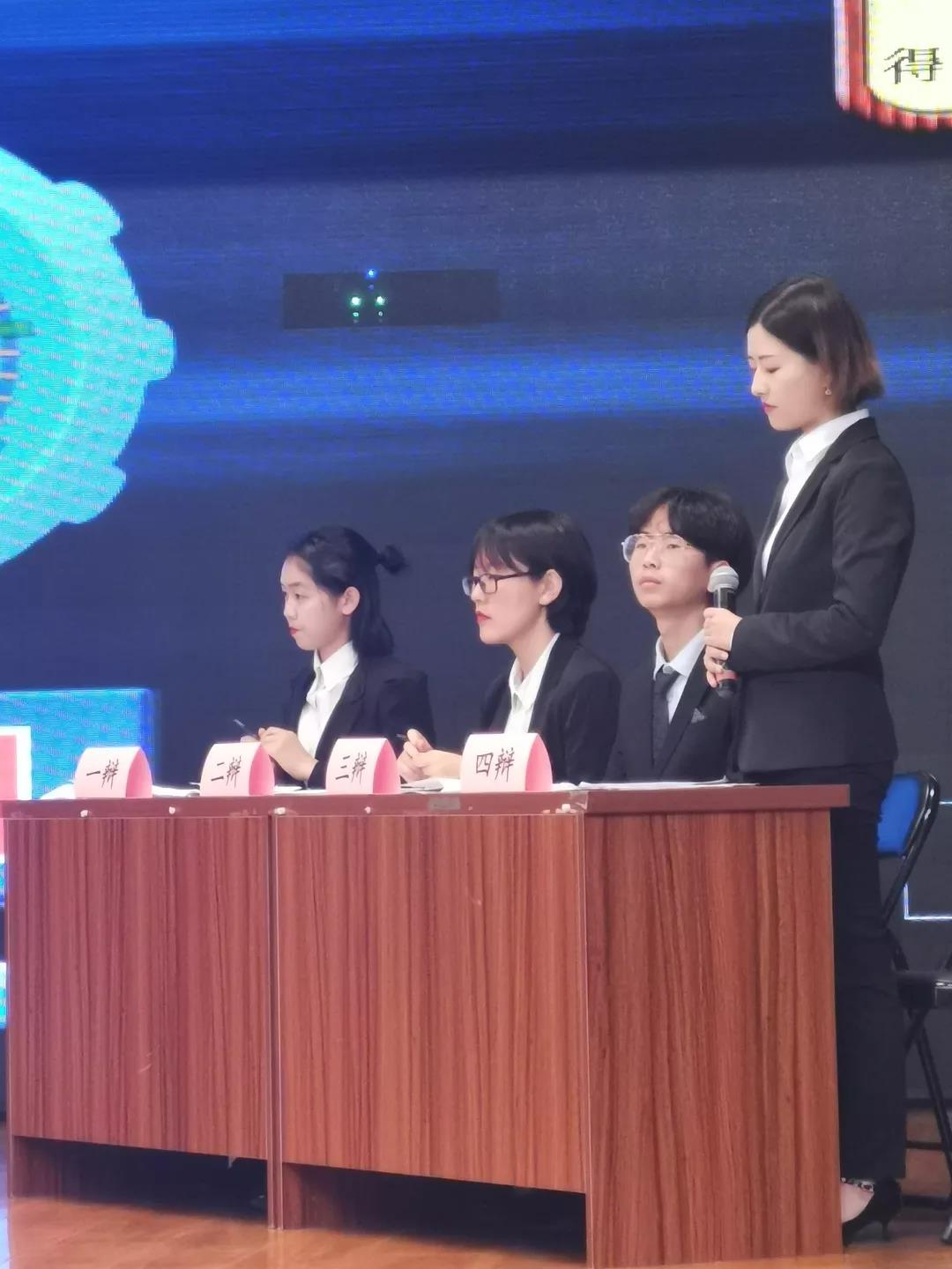 自由辩论期间,对手的强势提问给我方造成了不小的麻烦,但我方四名同学相互协调,彼此合作,有条不紊地与对面进行言语博弈,最后还是在我们四位辩手的“精准打击”下,从对方立论的漏洞突破了对方最后的防线。
