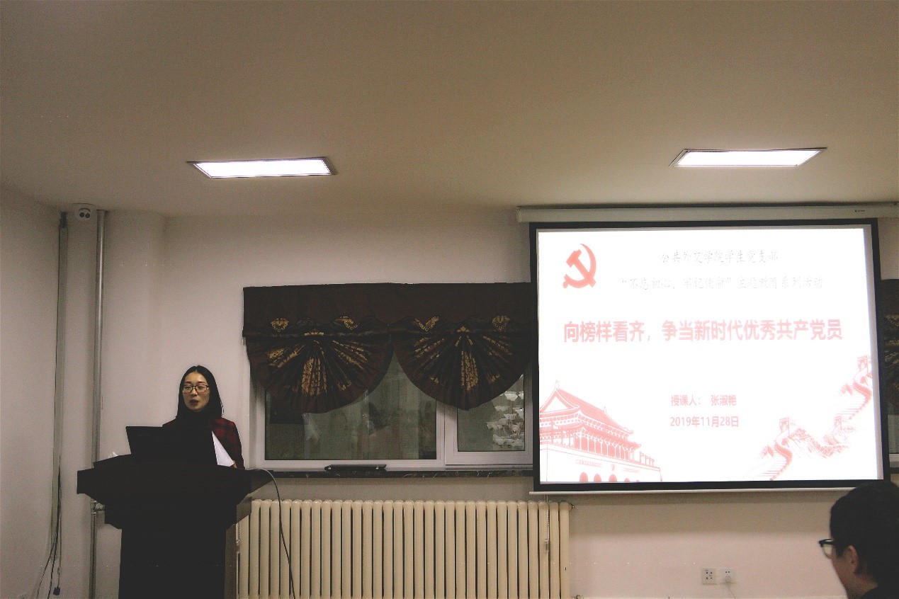 为贯彻落实中共中央关于“不忘初心,牢记使命”主题教育活动的部署,根据学院“不忘初心、牢记使命”主题教育工作安排,11月28日上午,必威员工党支部在行政楼二楼会议室召开了以“向榜样看齐,争当新时代优秀共产党员”为题党课活动,党课由员工党支部书记张淑艳老师主讲,党支部员工党员、预备党员及部分入党积极分子参加了此次活动。