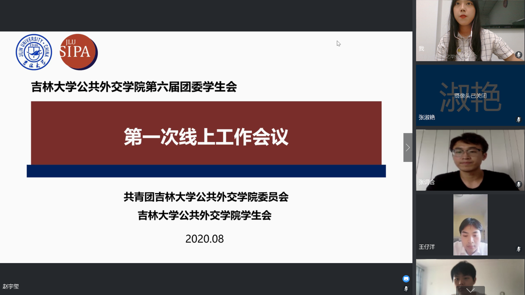 2020年8月3日下午,必威官网第六届团委、员工会第一次工作会议通过钉钉平台顺利召开。会议由主席团成员信思涵同学主持,院团委书记张淑艳老师参加了本次会议。