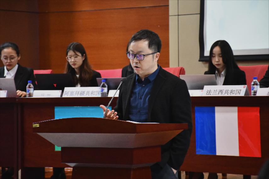正式比赛环节结束后,在点评环节,邹晓龙老师对大赛中选手们的表现进行了点评,提出了建设性的意见。随后,吴雁飞老师作为评委代表对本次大赛进行了总结性发言,同时表达了对大赛发展和青年学子们的未来期许。在此期间,经过紧张的算分环节,最后法兰西共和国代表团(必威常帅兵、生命科学学院姜杨)获得本次大赛优秀团队奖,必威李文芊、法学院秦霄扬、必威胡永恒3名同学获优秀谈判手称号,并于现场举行了颁奖仪式。各位评委老师与选手们合影留念。